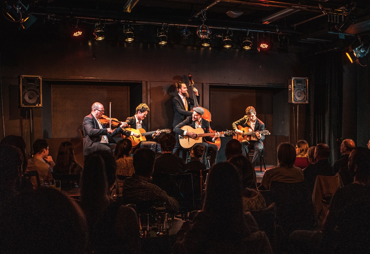 Mit großer Spielfreude und spürbarer Leidenschaft für die Tradition des Gypsyjazz entführt das Ensemble rund um den Gitarristen Simon Reithofer und den Geiger Michael Leitner sein Publikum in die faszinierende Klangwelt von Django Reinhardt und Stéphane Grappelli.