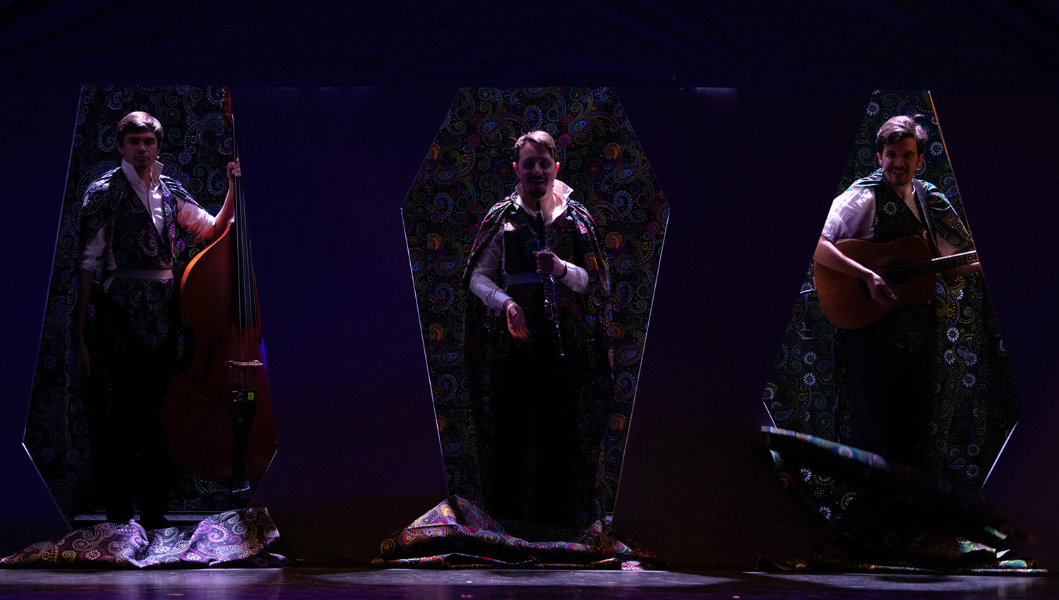 Moritz Weiß, Gråf Mørritz (Klarinette) | Niki Waltersdorfer, Baron Nimmermehr (Gitarre) | Max Kreuzer, Fürssst Maksss (Kontrabass) | Julia Ruthensteiner-Schwarz, Ada