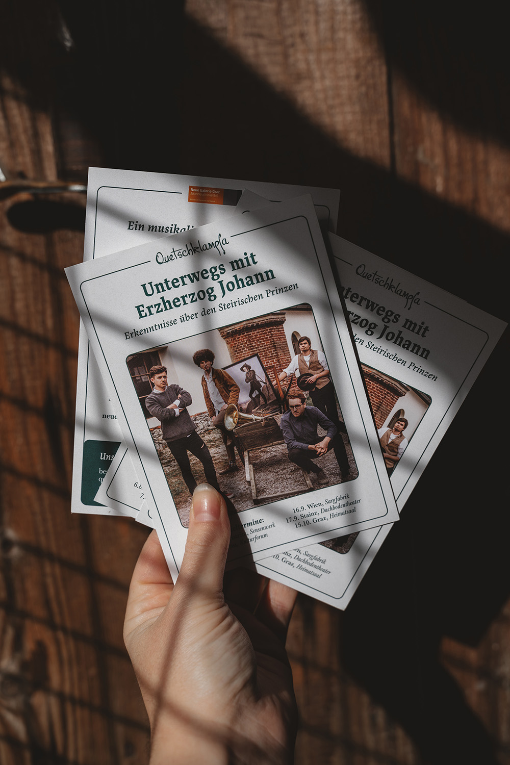 Die für die Musikkabarett-Tour »Unterwegs mit Erzherzog Johann« erstellten Flyer schmücken sich mit wunderbaren Fotos unseres Partners reithofermedia.